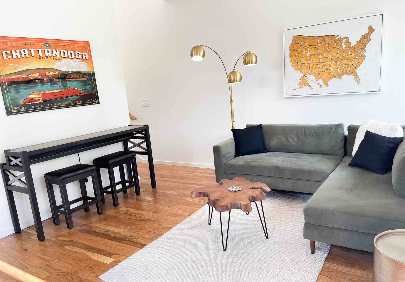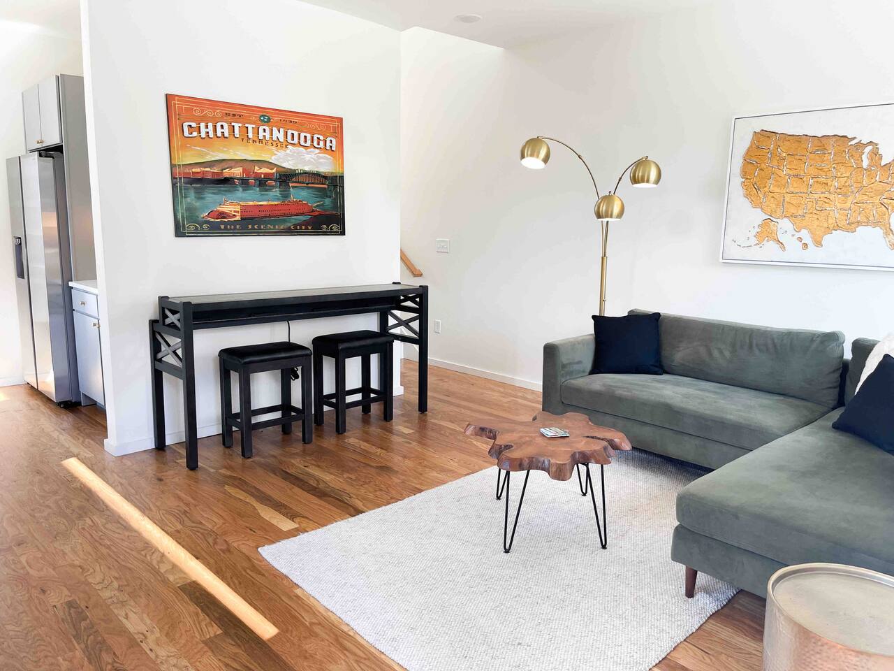 🏠 Spacious 1 bedroom /1.5 bathroom townhome with designated workspace Comfy bed and couch with extra blankets and pillows and a 70 inch tv for Netflix and chill after a long, fun day exploring! Sleeps 2 guests. With advance notice, we can provide an air mattress for an additional sleeper. ☕️ Well stocked kitchen and coffee included. Make you a cup on us, or hop across the street to Sunny Cup or Chattanooga Coffee Company for the best cup o’ joe in town! Coffee shops and other great restaurant recommendations sent the day before check-in! 🚗 Parking lot and street parking available (+ EV chargers nearby) 🐾🐱🐶 Pet Friendly +++ Not only are we pet friendly, we allow your furry friends to join you for free! They're sure to love the Riverwalk and trails nearby! And an added bonus - we're walking distance to the Animal Hospital on Broad Street if a procedure is what's bringing you into town. 🚴🏽♀️ Only steps away from the Riverwalk, which spans over 16 miles throughout the St Elmo and Downtown areas. Scooters and Bikes available to rent nearby (Electric options as well!). ⛰️ Located at the foot of Lookout Mountain, offering picturesque views and hiking trails. Also near many tourist attractions such as Rock City, Ruby Falls, and TN Aquarium.