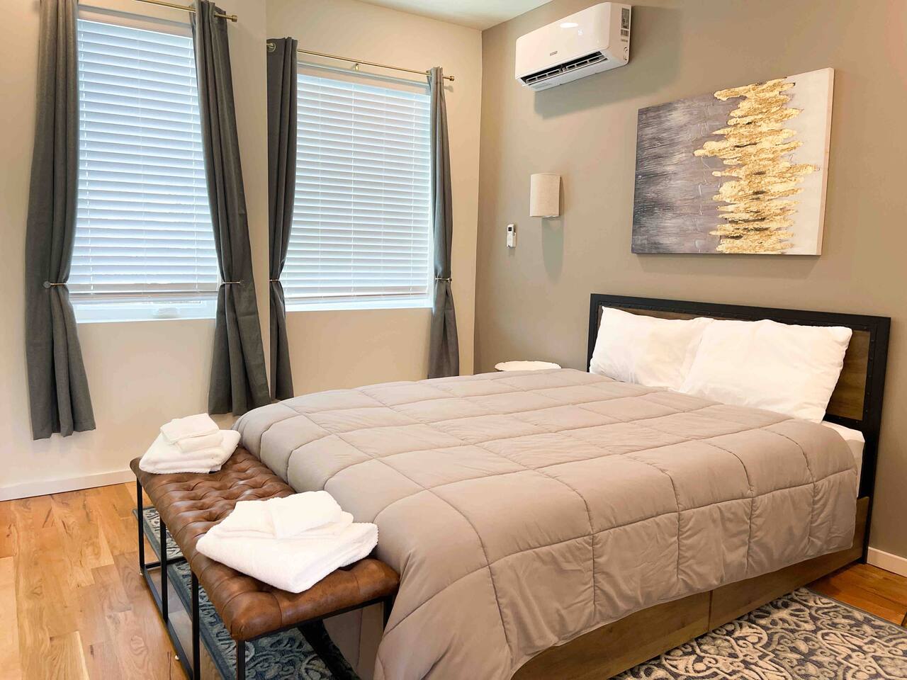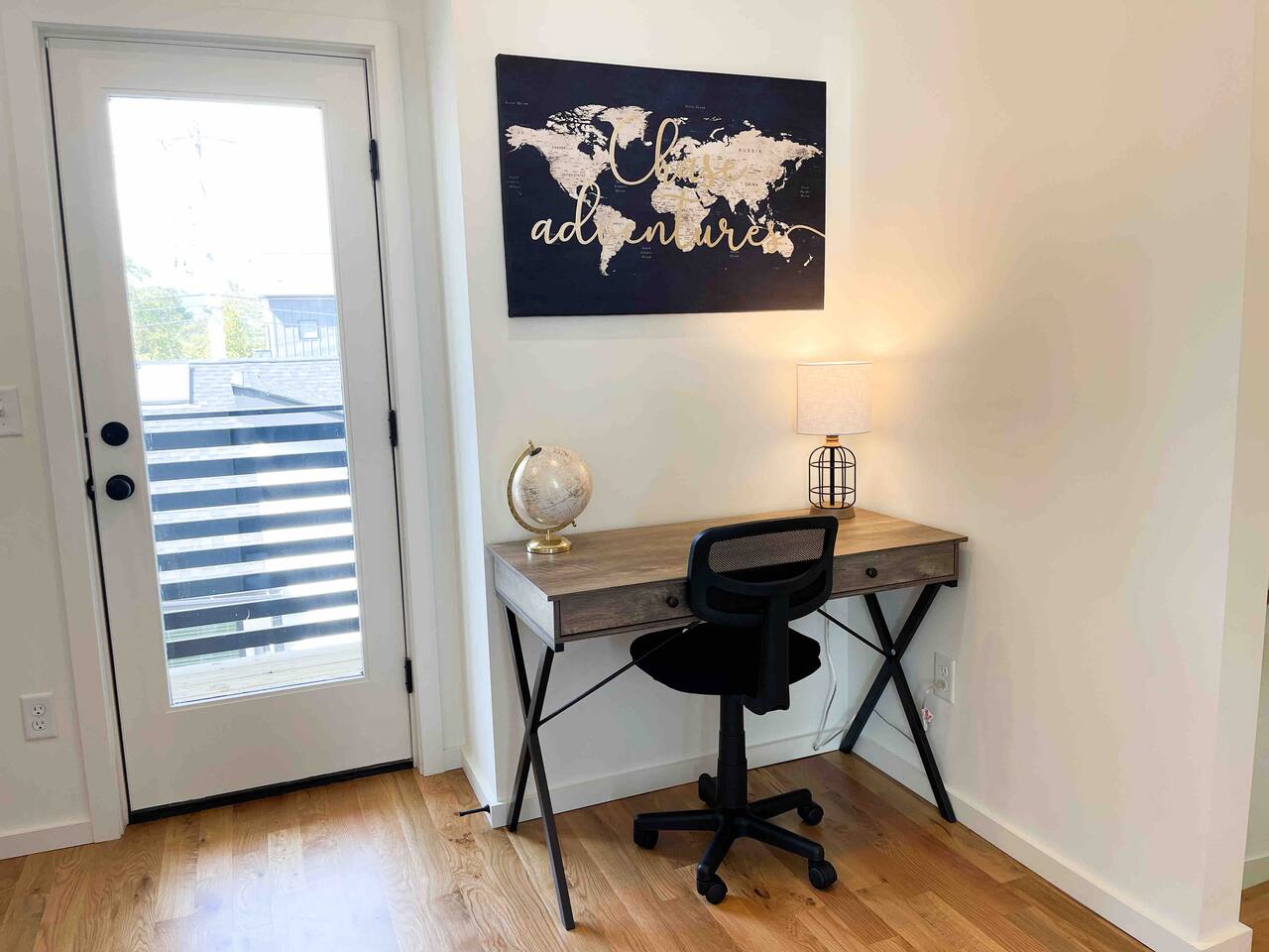 This is a 2 bedroom home with a nook that we have set up as an additional sleeping space. The nook does not have privacy from the stairwell and leads into the second bedroom, but has a closet and balcony, making it a comfortable space for any additional guests!