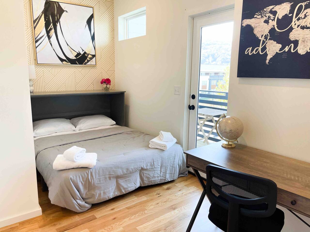 🏠 2 Bedroom/2.5 bath townhome. 1st Level - Open living room and kitchen, with half bath. There is a nice sized patio with views of Lookout Mtn in the distance! 2nd Level - Main bedroom with ensuite bathroom. There is also a washer and dryer and balcony. 3rd Level - Second bedroom with ensuite bathroom and a balcony. There is also a Murphy bed in a separate nook from the bedroom for an additional sleeper. ☕️ Well stocked kitchen and Keurig Coffee Maker. Make you a cup and relax on the patio, or hop across the street to Sunny Cup or Chattanooga Coffee Company for the best cup o’ joe in town! Coffee shops and other great restaurant recommendations sent the day before check-in! 🚗 Parking lot and street parking available (+ EV chargers nearby) 🚴🏽♀️ Only steps away from the Riverwalk, which spans over 16 miles throughout the St Elmo and Downtown areas. Scooters and Bikes available to rent nearby (Electric options as well!). ⛰️ Located at the foot of Lookout Mountain, offering picturesque views and hiking trails. Also near many tourist attractions such as Rock City, Ruby Falls, and TN Aquarium.